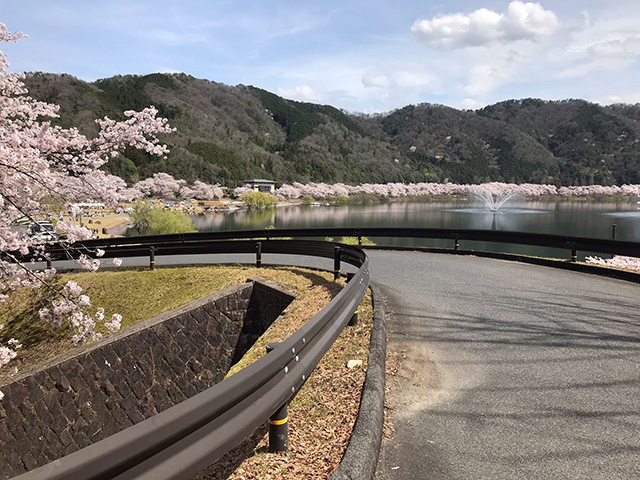 この日は土師ダム湖畔の桜がすでに満開で、ダム湖360度の桜が美しい花見の風景を作り出していました。桜の手入れを毎年行っていたにもかかわらず、土師ダム湖畔の満開の桜を見るのは初めてで特別な瞬間でした。